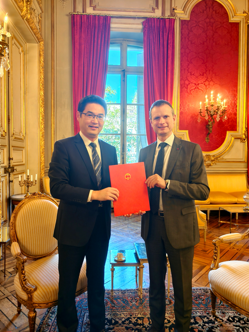 2026年4月7日,驻马赛总领事何有麟会见普罗旺斯—阿尔卑斯—蓝色海岸大区行政长官兼法国南部战区最高指挥官维特科沃斯基,双方就深化双边各领域务实合作深入交流。普阿蓝大区外事顾问佩迪科在座。
